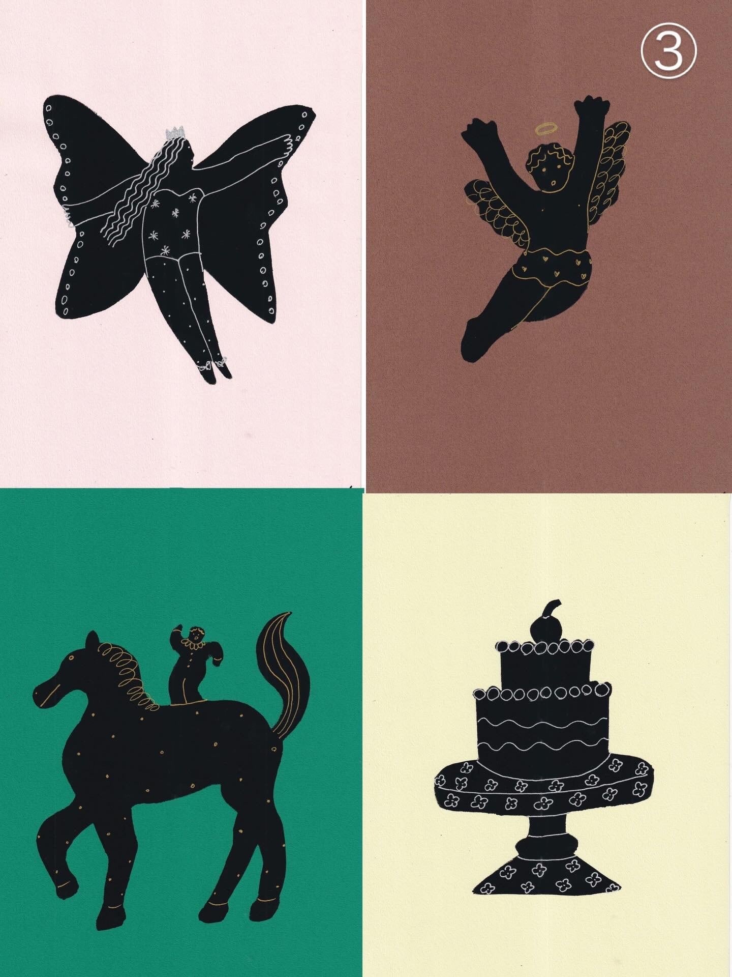 1セットにつき、絵柄は画像に写っている4枚が入っています。