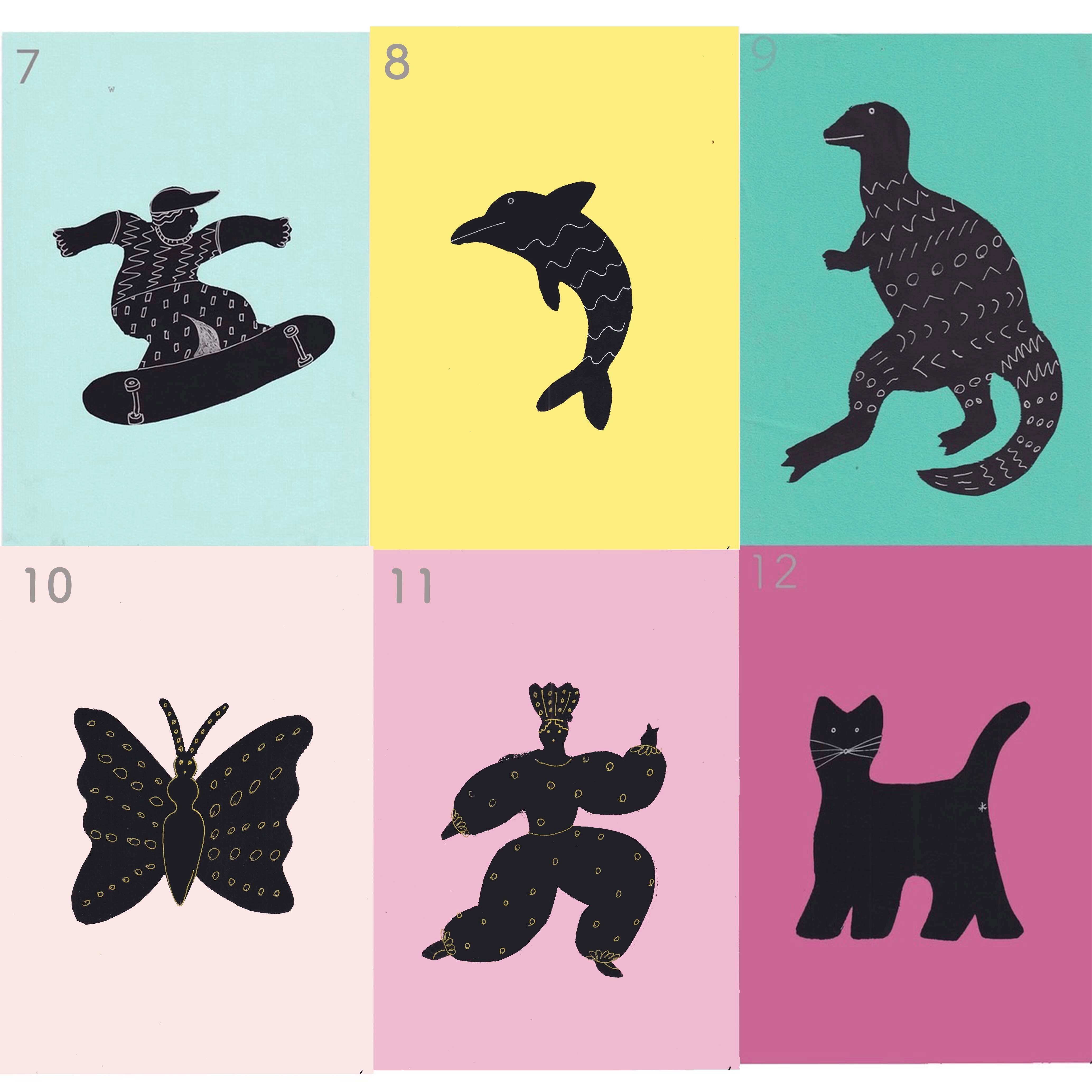 備考欄に必ずご希望の4つの絵柄番号をご記入ください。色紙のご希望がありましたらおおまかに対応も可能です。(ex:シック、カラフル、パステル、色を統一、など。)